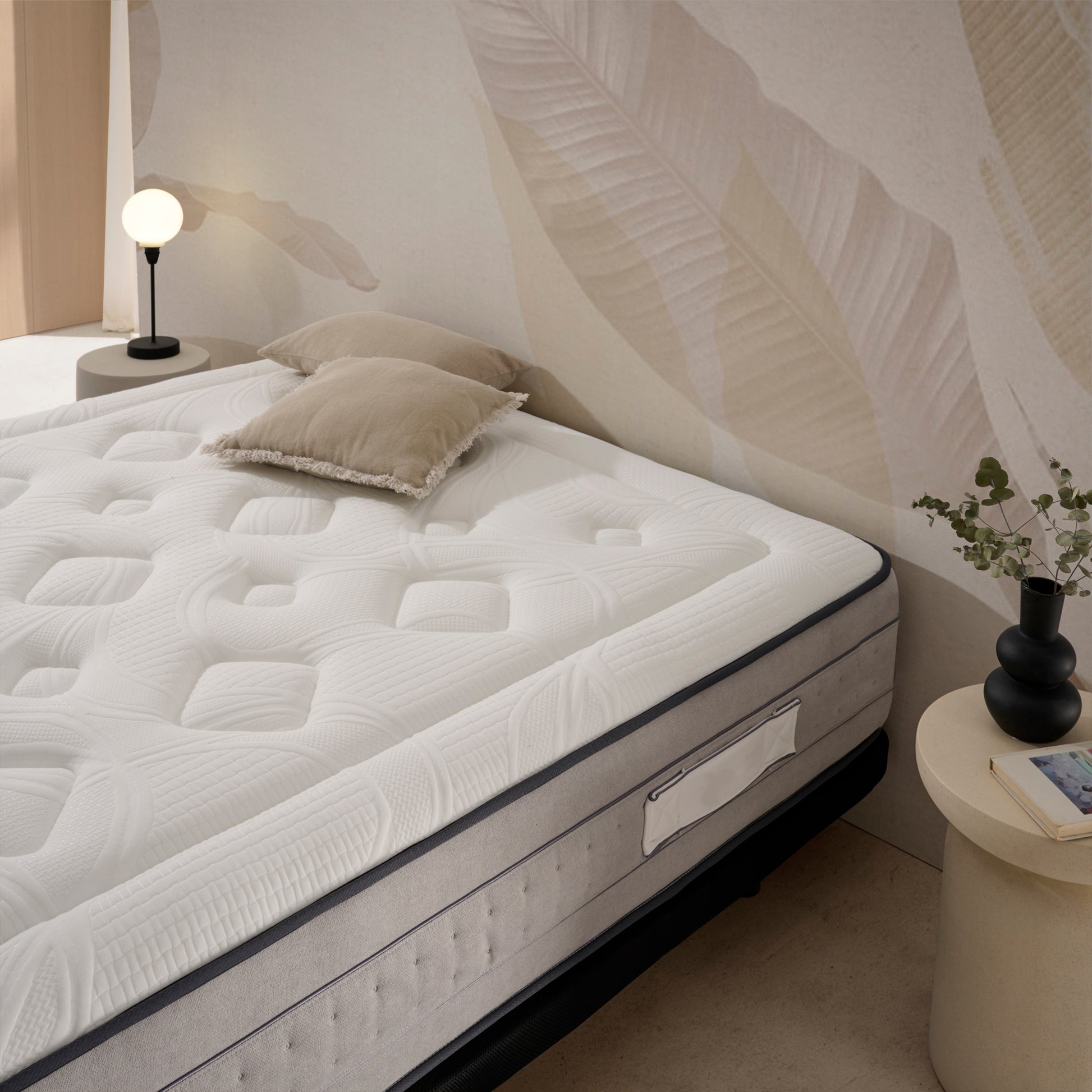 El colchón BREDA es la elección premium para quienes exigen lo mejor en confort, tecnología y salud del sueño. Con una altura generosa de 31 cm (+/-2 cm), integra el exclusivo núcleo AIRTECH D50 Multizona de Häusbed, compuesto por microcélulas de poro abierto que ofrecen un soporte firme, duradero y adaptable. Este núcleo de alta gama se adapta a cualquier cuerpo, recuperando su forma original sin perder sus propiedades con el paso del tiempo.